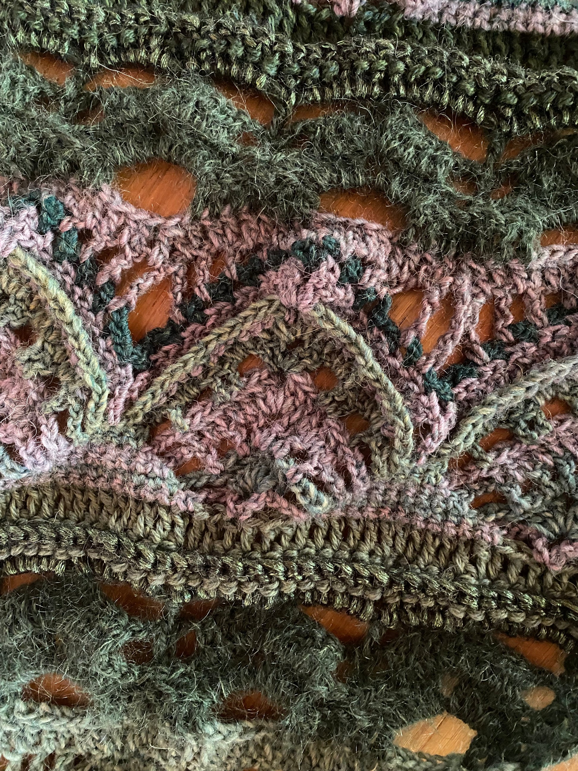 Silk mohair, alpaca, uld samt en pyntetråd i acryl