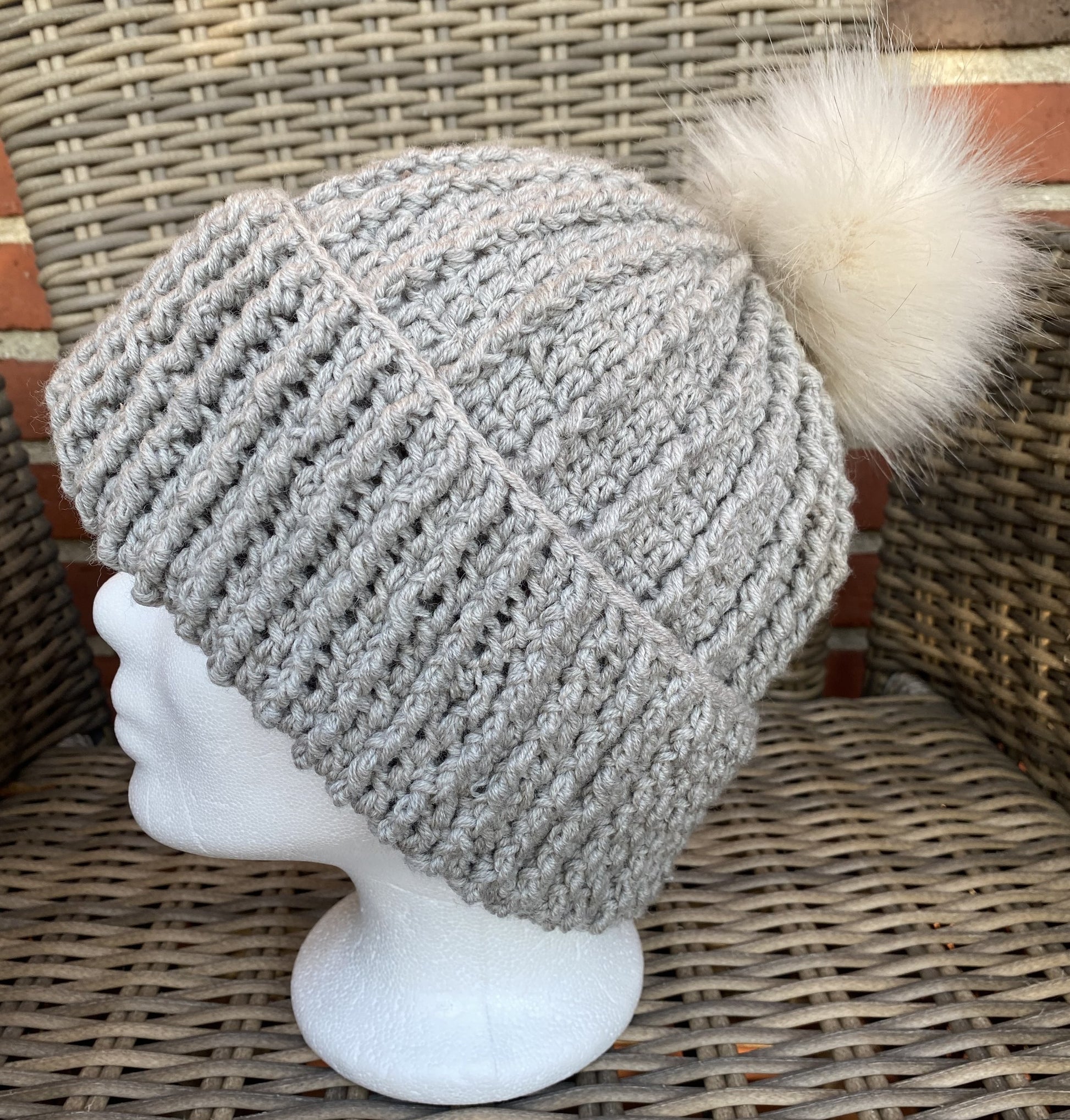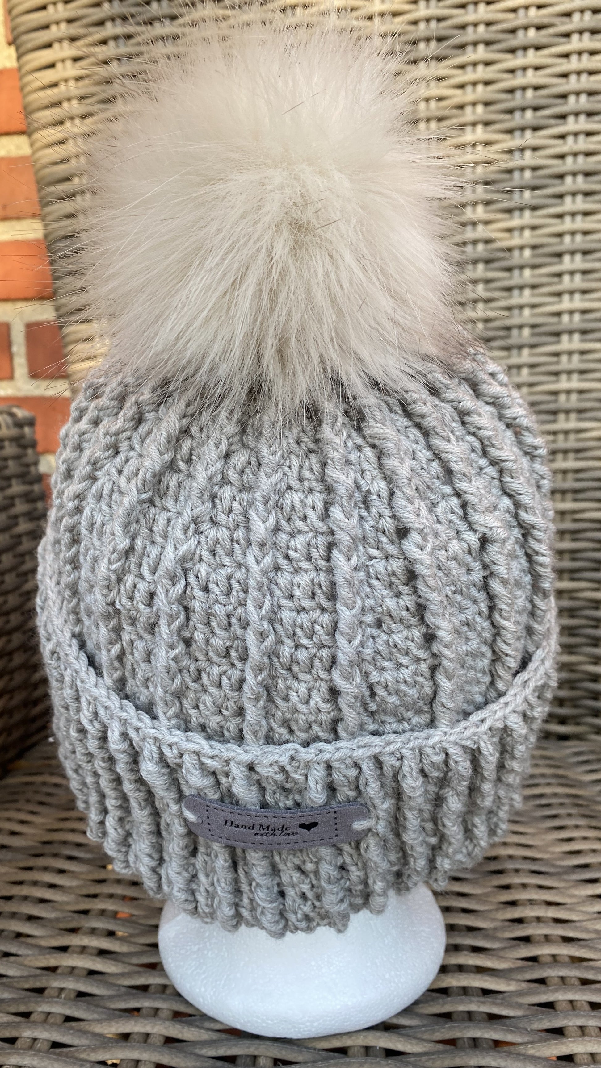 Skøn hæklet hue med 'pels'